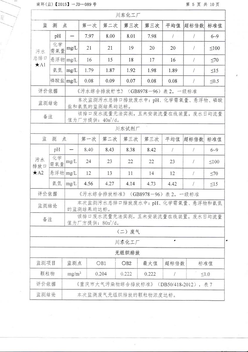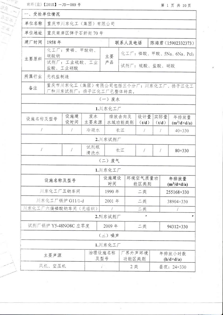 重慶川東化工(集團)有限公司-渝川東環境信息公示